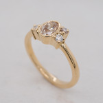 A delicate rubover set oval champagne diamond with a cluster of white and champagne diamonds crafted in yellow gold.